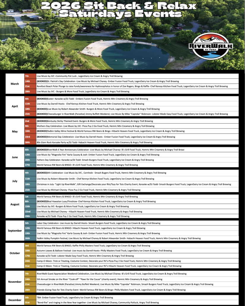 Looking for a campground or RV park built for your RV, fifth wheel or camping trailer with full hookups, pull thrus and backin sites. Riverwalk RV Park is centrally located within walking distance of both small town downtown areas.